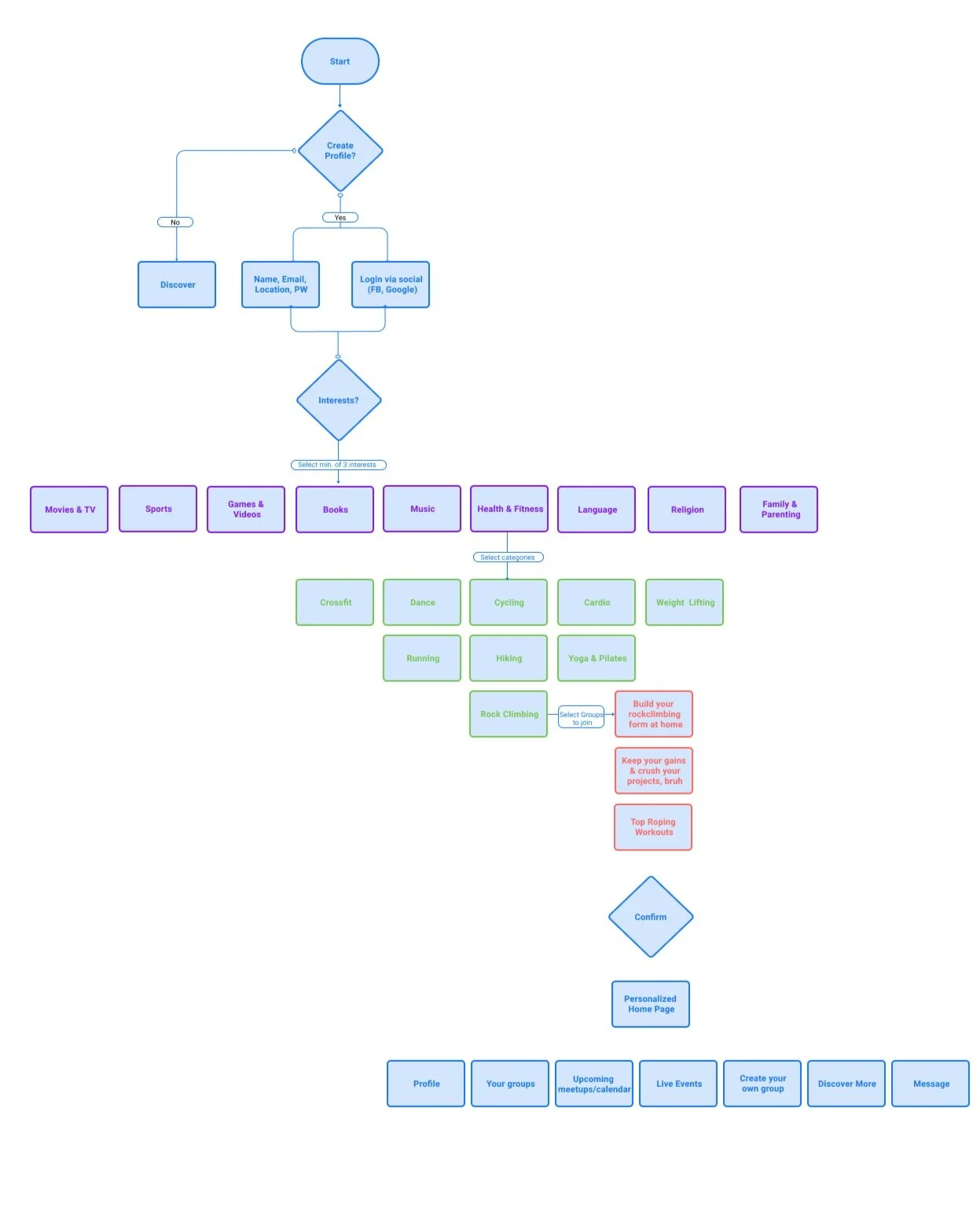 It should be noted that we spent the crux of this project was discussing how a user would find her hobby and group of choice.